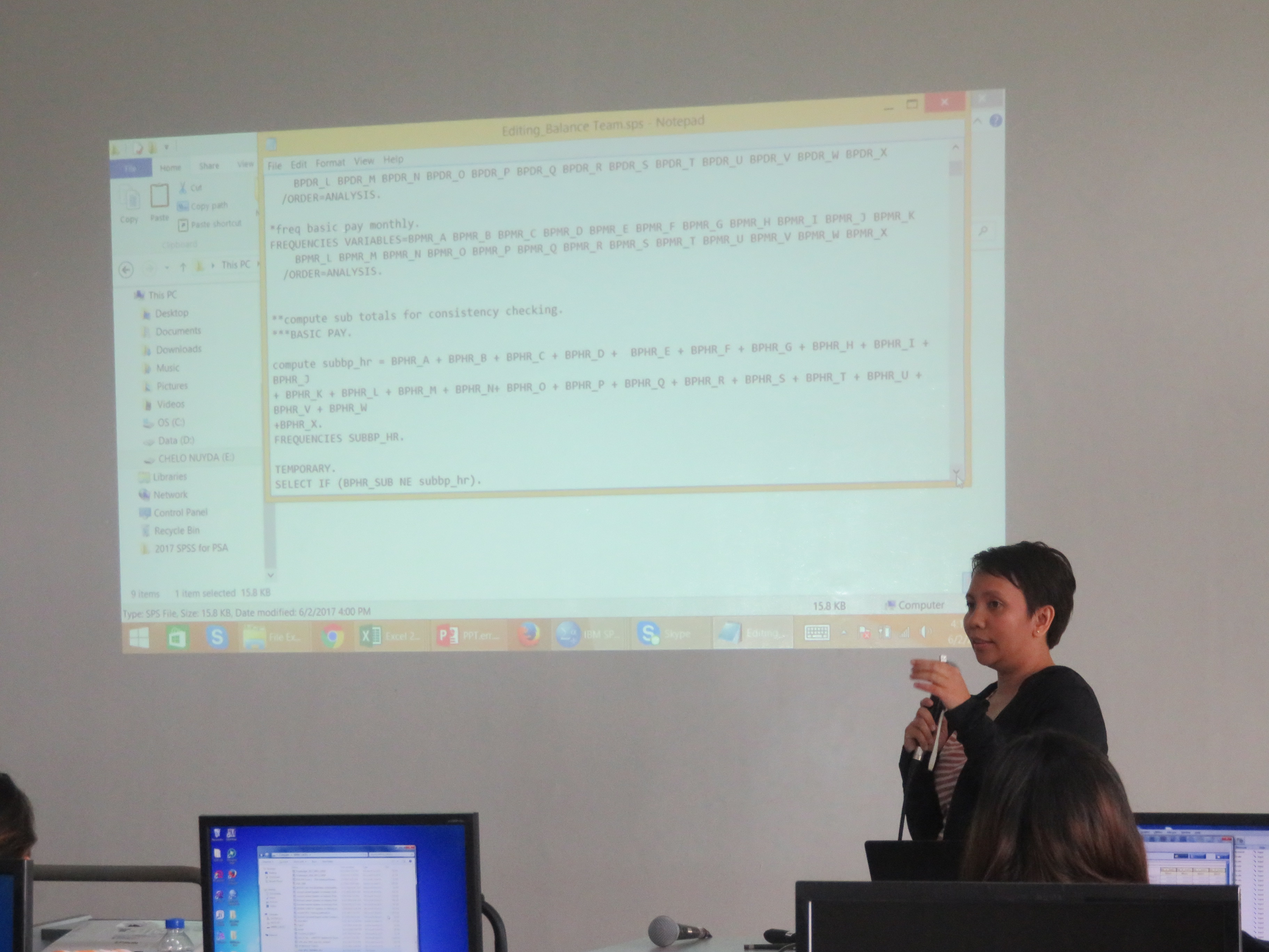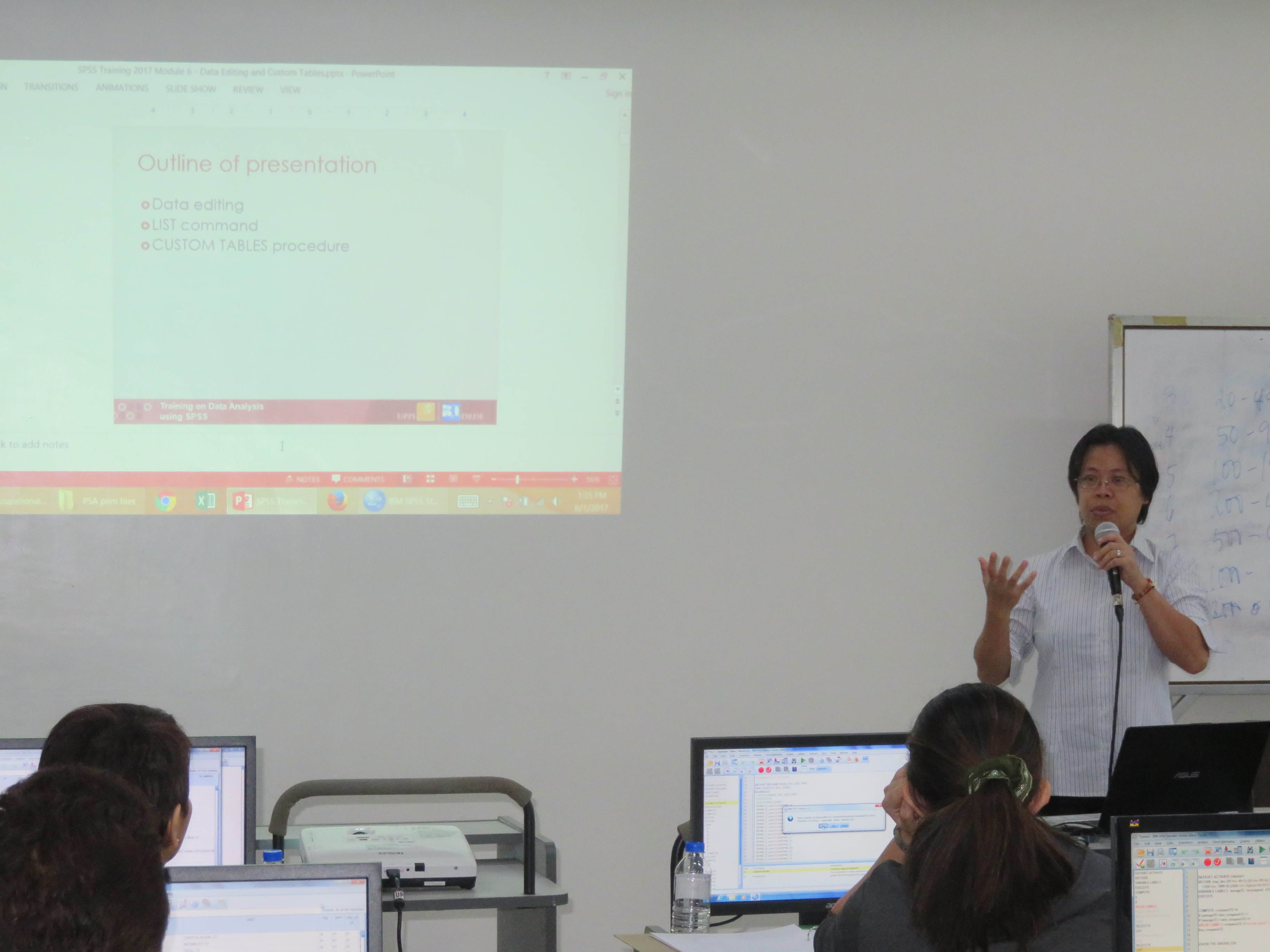 » Gallery: Training on Data Analysis Using IBM-SPSS for Philippines Statistics Authority Social Sector Statistics Service (PSA-SSSS) Staff (May 30, - June 2, 2017)
